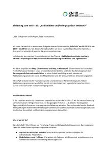 Liebe Kolleginnen und Kollegen, liebe Interessierte, wir laden Sie herzlich zu einer neuen Ausgabe unseres Onlineformats „Sofa-Talk“ am 09.03.2026 um 10:00 – 11:30 Uhr ein. Mit diesem Format schaffen wir einen regelmäßigen Raum für fachlichen Austausch zu aktuellen Fragen der Extremismusprävention. Im Fokus der kommenden Veranstaltung steht das Thema: „Radikalisiert und/oder psychisch belastet? Psychologische Perspektiven auf Radikalisierung von Kindern und Jugendlichen“. Als Gäste begrüßen wir Mag. Dieter Gremel und Mag. A Mona Apfl. Dieter Gremel ist Psychologe, Psychotherapeut,…