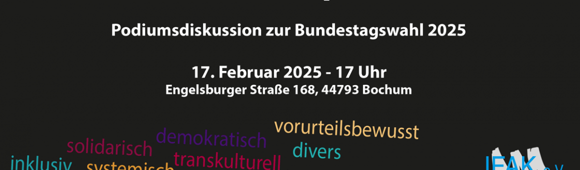 Podiumsdiskussion zur Bundestagswahl 2025 Für uns als sozialpolitischer Träger in Bochum ist Einmischen eine Selbstverständlichkeit. Wir laden Sie herzlich zu einer spannenden Podiumsdiskussion ein, bei der wir mit Bundestagskandidat:innen über die Schwerpunkte Migration,... weiter lesen →
