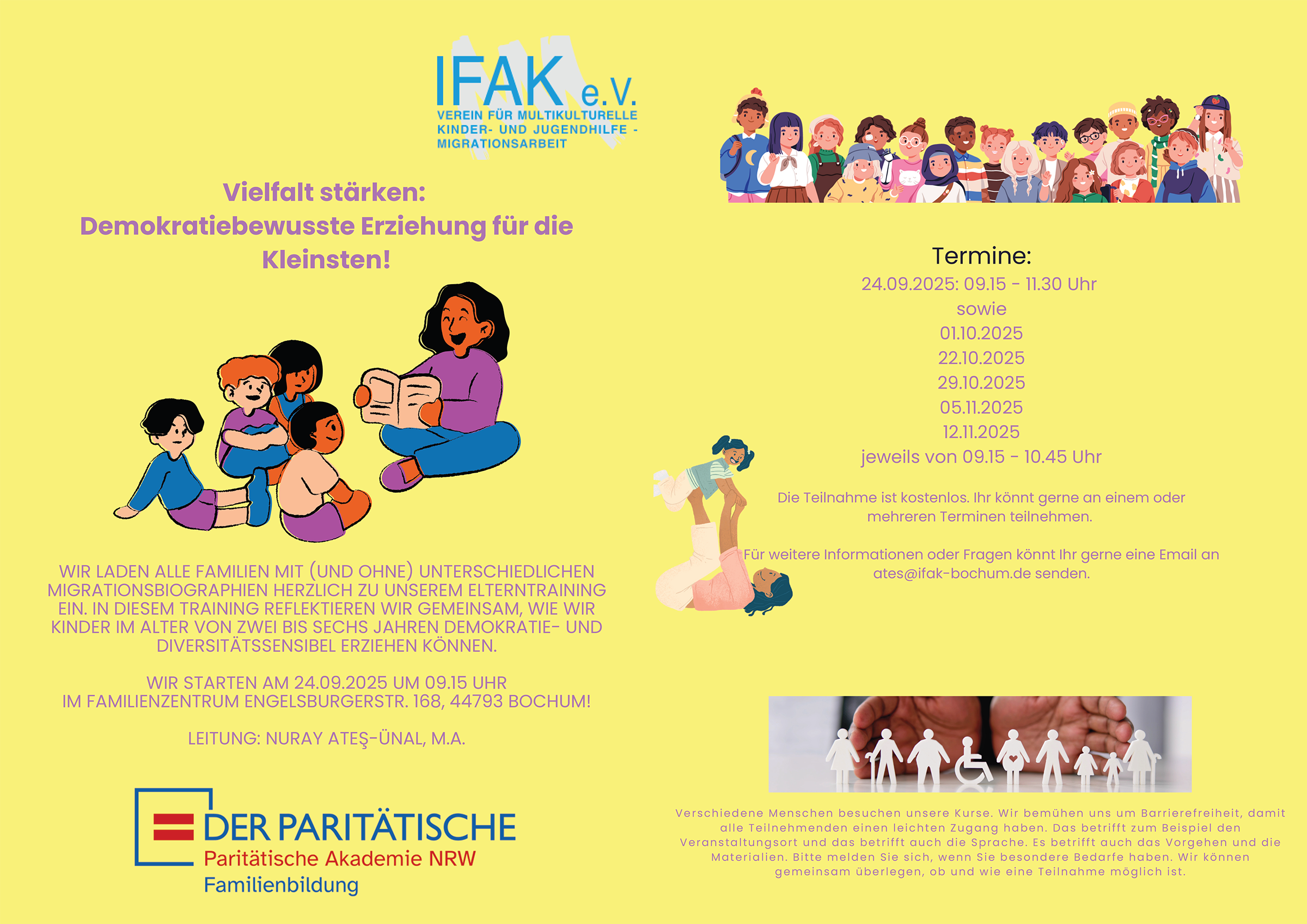 Die Kursreihe findet in Kooperation mit der Paritätischen Akademie NRW Familienbildung statt und erstreckt sich über sechs Sitzungen bis November.